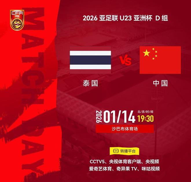1月14日晚19日北京时间:30,沙特U23亚洲杯小组赛最后一轮,U23泰国VS中国U23!只要中国队平局,他们就会晋级,他们仍然会尽最大努力赢得比赛。央视体育频道CCTV5、央视体育客户端,央视视频,爱奇艺体育,奇异果TV、咪咕视频直播!前两场比赛,泰国U231负1平,暂时小组排名垫底,但是U23国足不能轻敌。